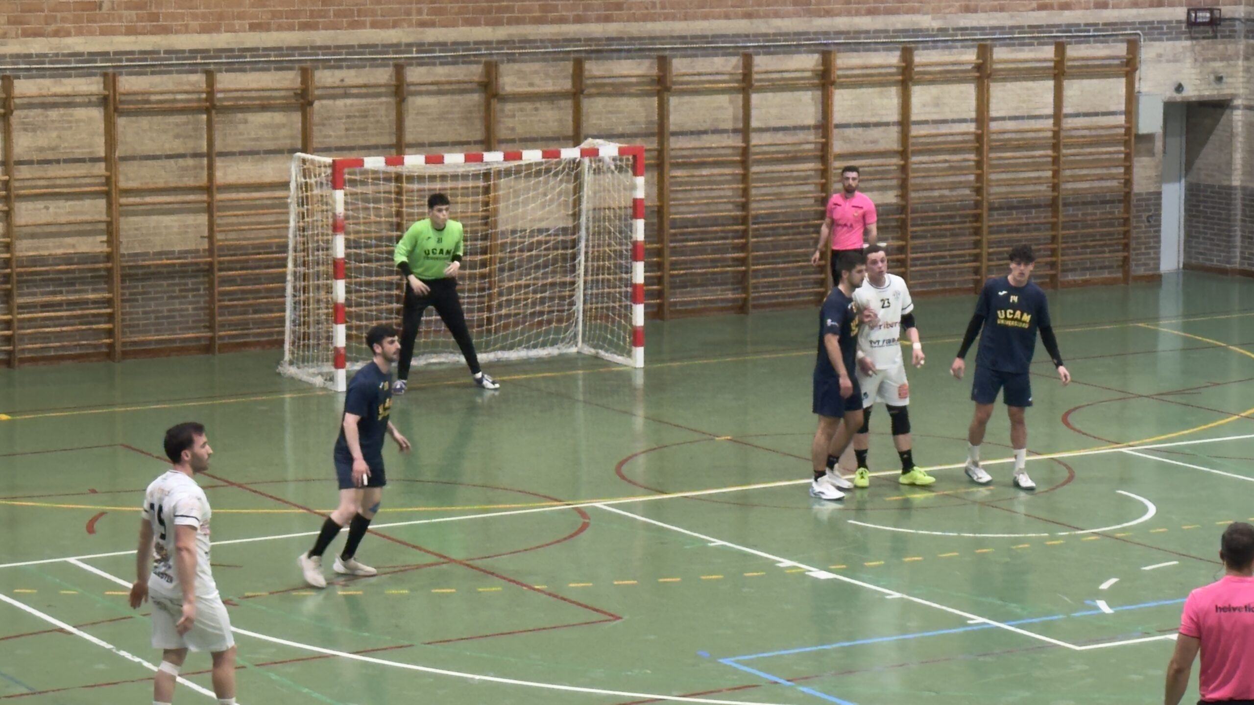 El portero de Cartagena, Pepe Jiménez, lidera una gran victoria universitaria en Valencia. Jiménez, no sólo hizo paradas de superior categoría, sino que marcó un gol a puerta vacía de alto contenido emocional. Una primera parte de un despliegue defensivo impecable de Ucam, simultaneando un 6:0 con defensas abiertas, aspecto que se le atragantó en su ataque a los locales (10-11), al descanso. Luis Gestoso se encargó de marcar el ritmo ofensivo de su equipo, Raúl Rodríguez convirtió los lanzamientos de 7 metros con solvencia y Manuel Muñoz Gil estuvo inspirado en la segunda línea junto al bloque compacto que sensatamente dirigió Víctor Rocamora.
