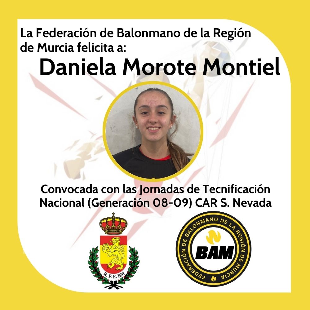 DANIELA MOROTE MONTIEL JUGADORA DE LA A.D. ABARANERA CONVOCADA POR LA RFEBM PARA LAS JORNADAS DE TECNIFICACIÓN EN EL CAR DE SIERRA NEVADA. ENHORABUENA!!ENHORABUENA!!
