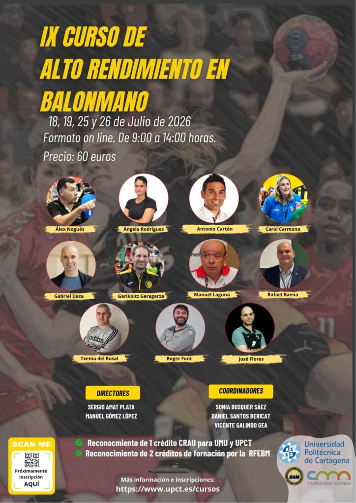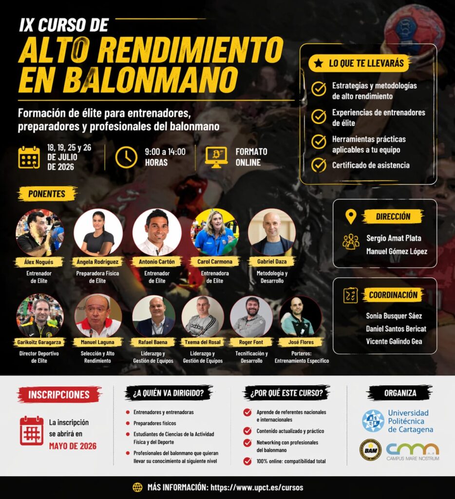 • IX CURSO DE ALTO RENDIMIENTO EN BALONMANO. EN MAYO SE ABREN LAS INSCRIPCIONES. ¡¡NO TE LO PIERDAS!!