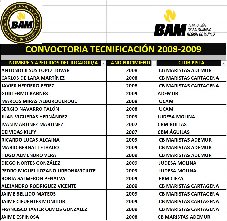 El área técnica de la BAM, en colaboración con la Real Federación Española de Balonmano, comunica convocatoria para las Jornadas de Tecnificación con las generaciones 2008-2009 y 2010 y 2011 masculina, a desarrollar el fin de semana del 10 y 11 de mayo en Águilas.