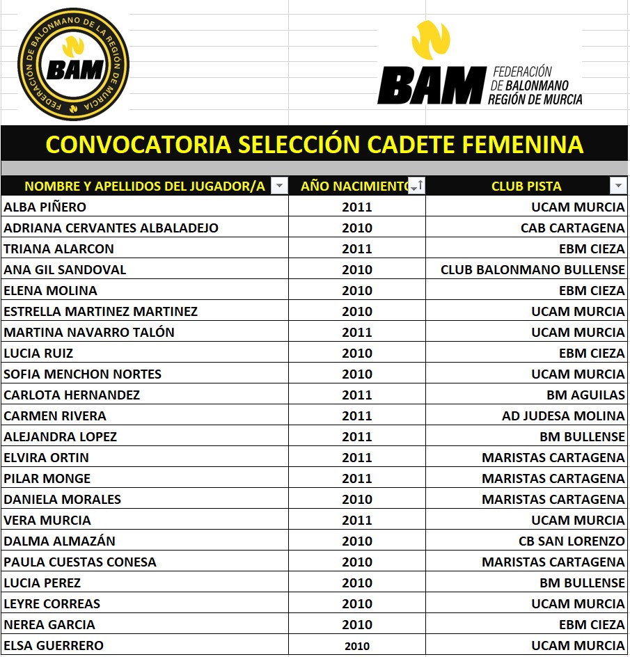 CONVOCATORIA CERRADA CADETE FEMENINA (Si no estás en el listado significa que no sigues adelante, sólo podrán asistir a este entrenamiento las convocadas)