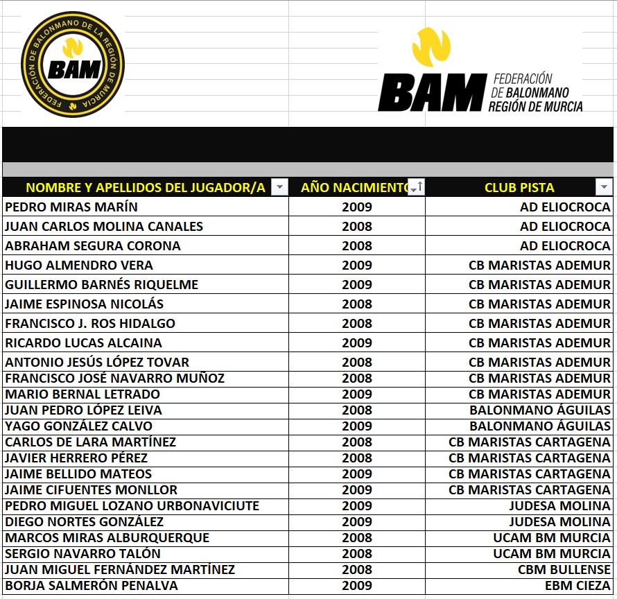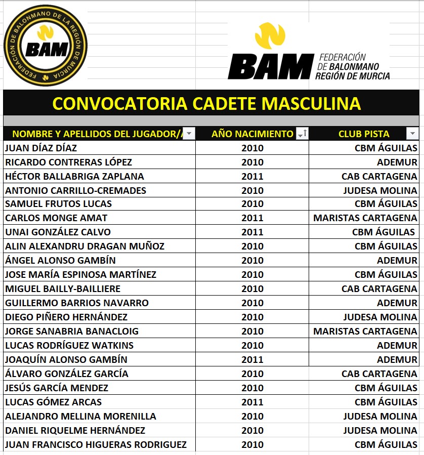 CONVOCATORIA CERRADA CADETE MASCULINA (Si no estás en el listado significa que no sigues adelante, sólo podrán asistir a este entrenamiento los convocados)