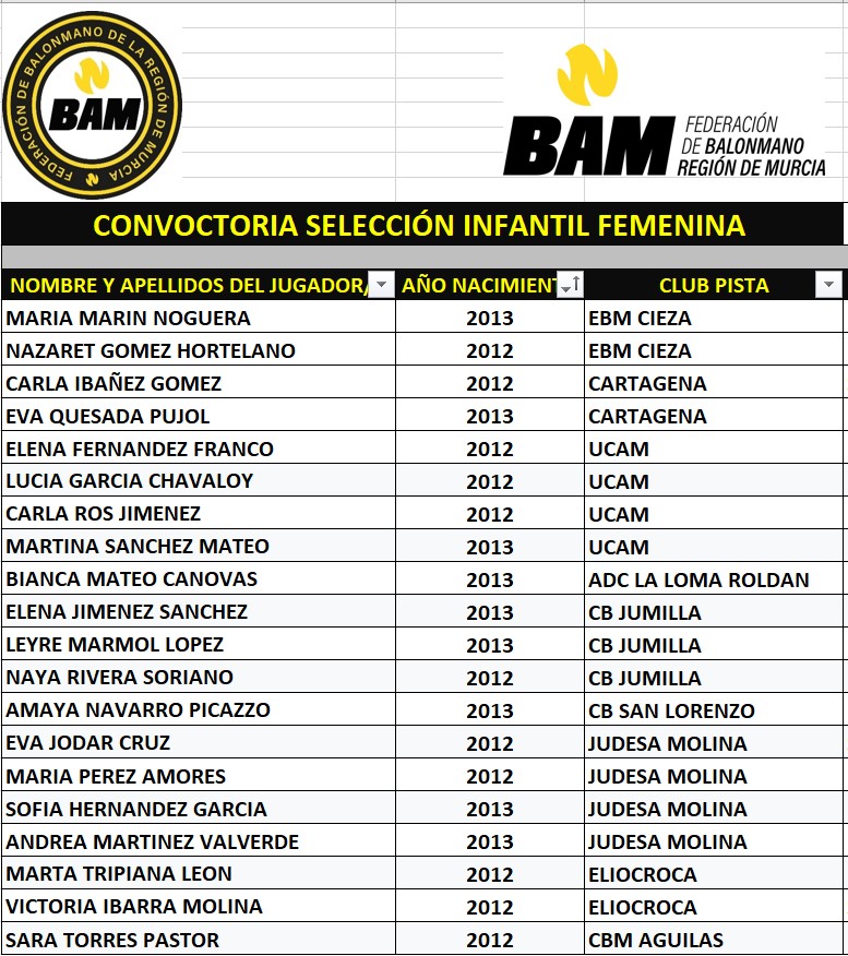 CONVOCATORIA CERRADA INFANTIL FEMENINA (Si no estás en el listado significa que no sigues adelante, sólo podrán asistir a este entrenamiento las convocadas)