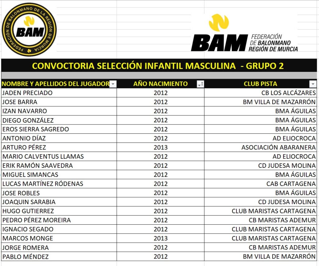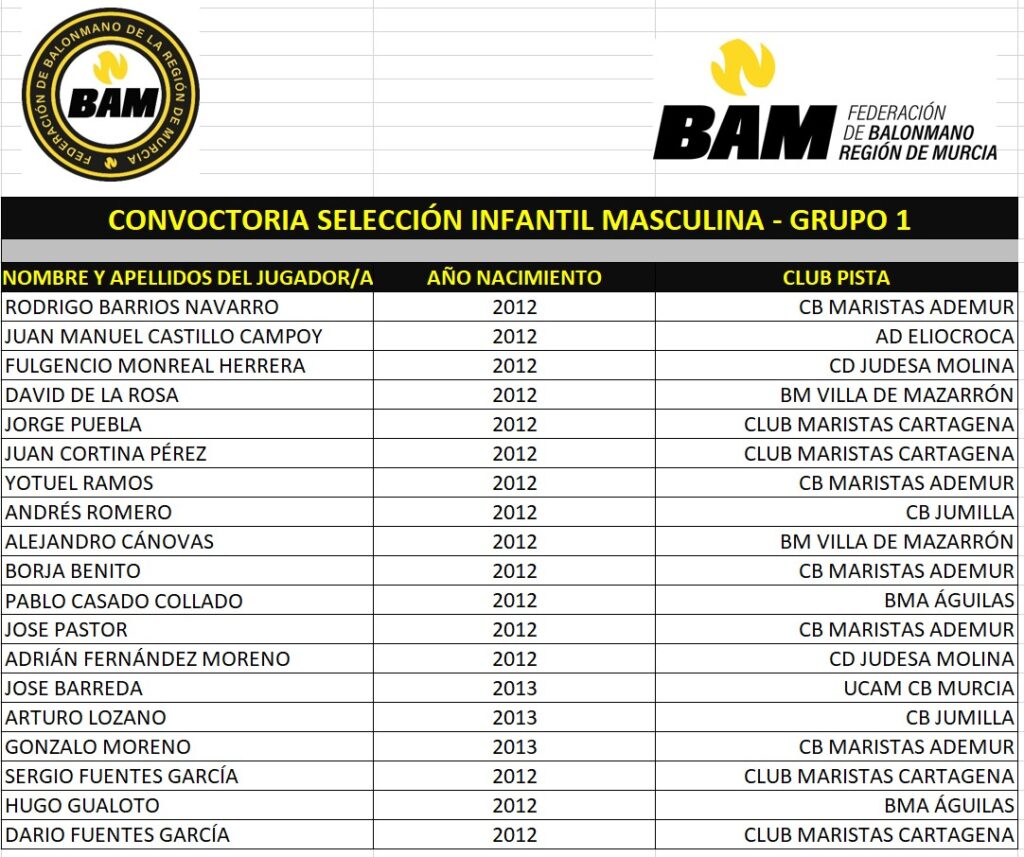 CONVOCATORIA CERRADA INFANTIL MASCULINA (Si no estás en el listado significa que no sigues adelante, sólo podrán asistir a este entrenamiento los convocados)