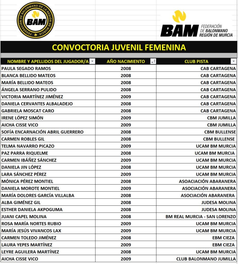 CONVOCATORIA CERRADA JUVENIL FEMENINA (Si no estás en el listado significa que no sigues adelante, sólo podrán asistir a este entrenamiento las convocadas y las que no pudieron hacerlo el primer entrenamiento)