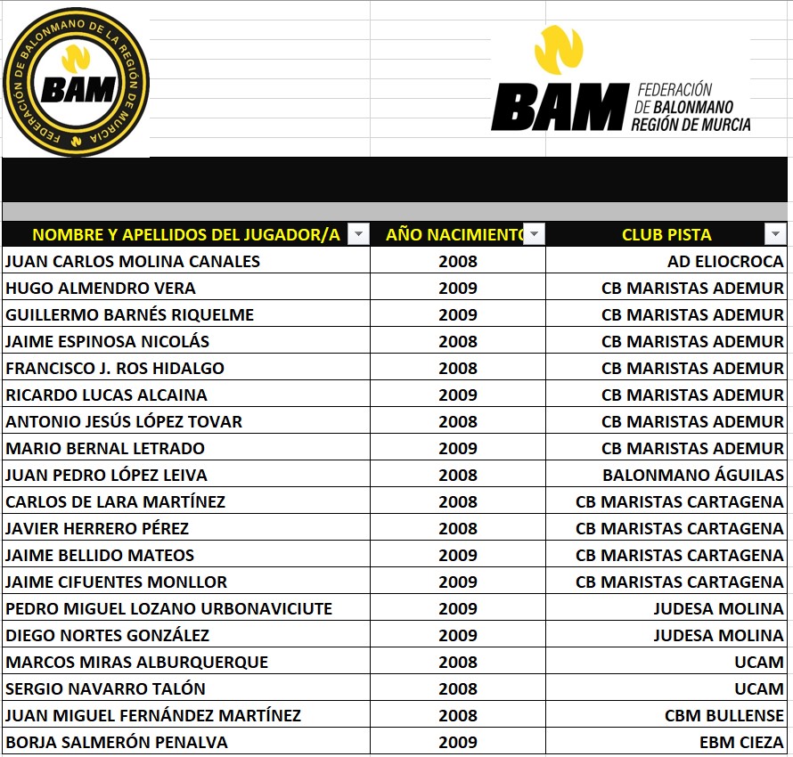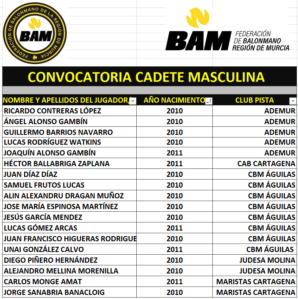 CONVOCATORIA CERRADA CADETE MASCULINA (Si no estás en el listado significa que no sigues adelante, sólo podrán asistir a este entrenamiento los convocados)